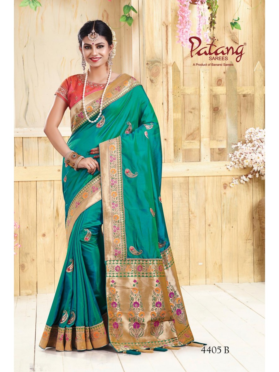 Indian Latest Designer Two Tone Silk Festive Wear Saree In Rama Green Color With Free Blouse